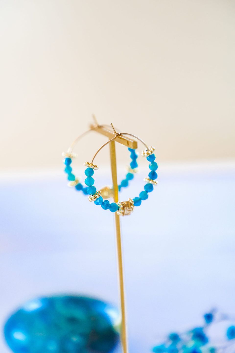 Ces boucles d’oreilles bleu océan sont en pierres fines : Apatites facettées.